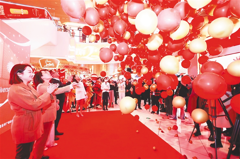 当天,GDF免税城热门品牌门店设立了两条通道,一条是结算通道,一条是体验通道。“为了应对春节和店庆期间的消费热潮,我们不仅加大热门商品的备货量,同时在高端产品免费体验、肌肤科技护理环节增加了人手。”一家品牌门店的销售人员介绍,春节期间,店内的销售成绩十分可观,部分商品甚至出现了供不应求的情况。
