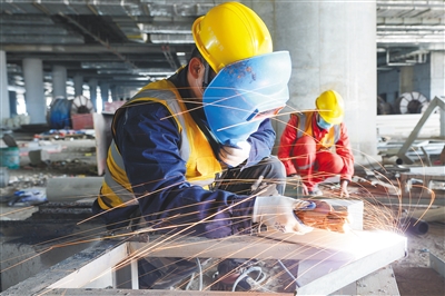 工程人员正在施工。 本组图片均由 本报记者 武威 摄
