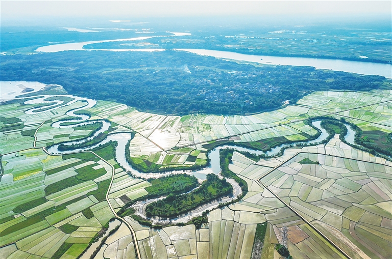 1月30日,俯瞰海口市琼山区云龙镇的三十六曲溪及周边的稻田,春意盎然。蜿蜒的河道与连片的稻田交织成景,勾画出一幅充满生机的美丽图卷。本报记者 王程龙 摄