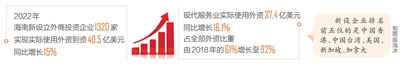 本报讯(记者罗霞)海南自贸港持续释放引资“磁力”,实际使用外资规模稳步增长。海南日报记者近日从省商务厅获悉,2022年,海南新设立外商投资企业1320家,实现实际使用外资到资40.5亿美元,同比增长15%。