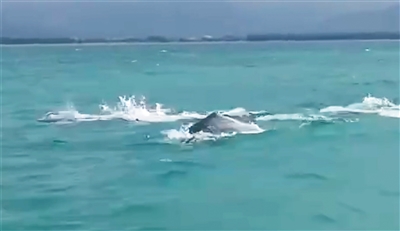 本报三亚2月5日电(记者黄媛艳)“快看,中华白海豚,大概有100多头!”2月5日9时许,在三亚崖州湾海域捕鱼归来的途中,三亚市崖州区梅联社区渔民林富指着海面上突然出现的一群中华白海豚惊呼。