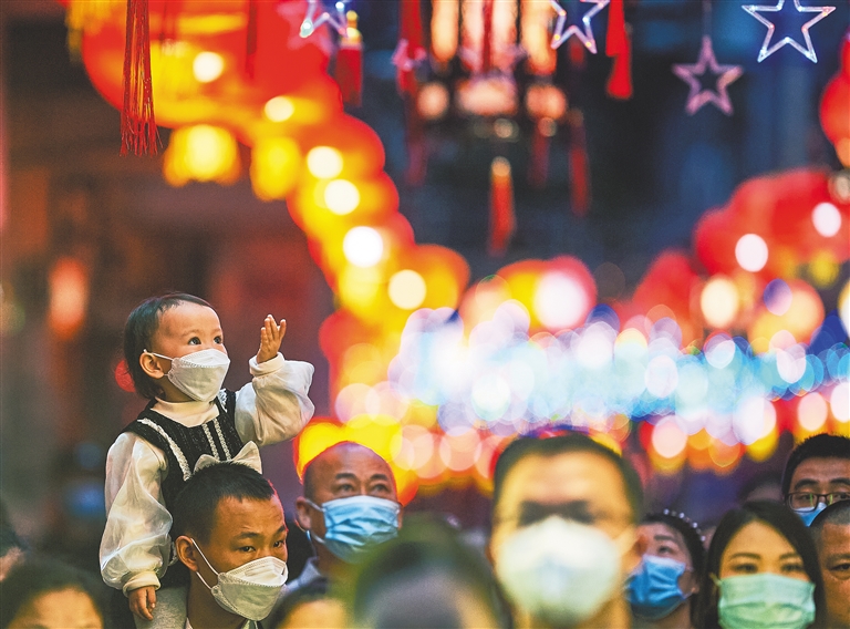 2月5日,元宵佳节,海口市琼山区府城地区被花灯装点一新,市民、游客纷纷前来赏灯祈福,欢度元宵佳节。 本报记者 封烁 摄 (相关报道见A06/07版)