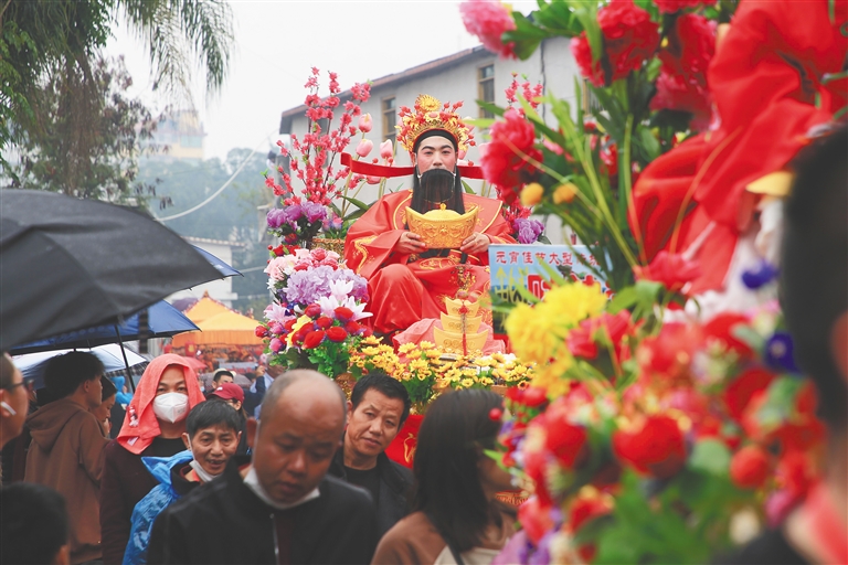 福建省龙岩市永定区社前村举行“出魁”民俗活动。