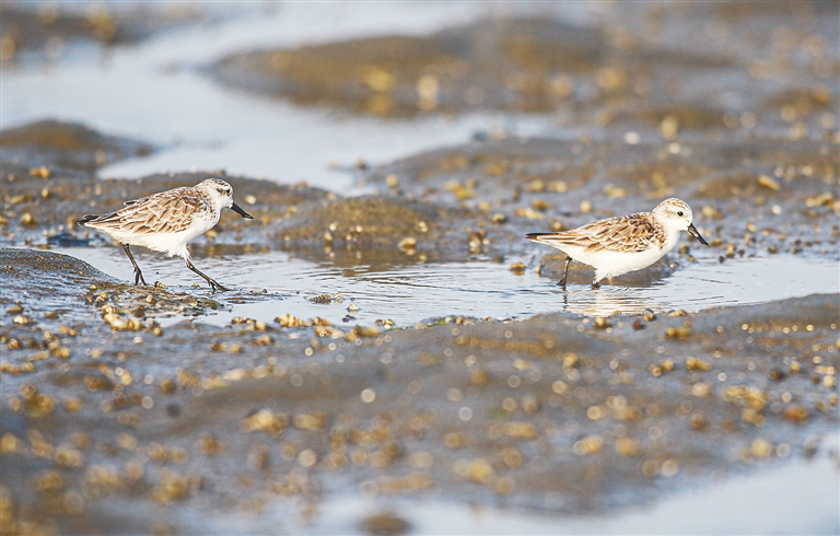 一只披着蓝色外套的小家伙,蹑手蹑脚地闯入了镜头中。“是蓝翡翠!你看它又长又大的嘴,还有亮丽华贵的蓝紫色羽毛。”海尾湿地公园管理中心副主任薛美丽欣喜于她最新拍到的鸟种,虽是管理人员,但她表现得更像一个热爱观鸟、拍鸟的鸟痴。