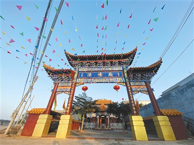 “将军印”“将军市”“将军塘”“将军汛”“兵马山”“兵马角”……细看清代光绪二十三年(1897年)《广东舆地图》中的《儋州图》,发现泊潮村周边地区,包括海域,分布着很多含有古代军事信息的地名,让人不由得想起元明时期的“军屯”现象。而在今天,当地还有“将军印”(北部湾中邻昌礁的古称和俗称)“将军庙”“将军石”(老村村口一块刻有古代武将形象的石敢当)等自然遗迹和人文遗存;泊潮村北侧有座“陈杨庙”,据村民口口相传,庙里纪念的是明代被锦衣卫迫害而逃匿至此的“陈杨二帅”,只是说不出他们的名字。