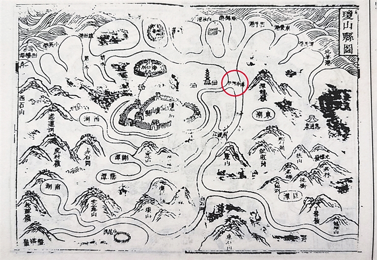 在琼州府城的南面,古时有一条溪流叫“学前水”,它源自西湖(即玉龙泉),流经丁村、洗马桥、南桥,分为两条支流,一条向北绕府城东门,经攀丹、龙岐向北,流经仙桥路、海甸溪入海,被称为“河口河”(也称潘公河),即现在的美舍河;一条经薛村响水桥,向府城东南流,汇入南渡江,流入江口的地方,即是“北冲河口”。乾隆《琼州府志》在琼山县图中,还显要标出北冲河口的位置。在明清时期,“北冲河口”可以说是个海南名气很大的地方,缘于不知是哪个朝代,有个风水方家留下一句谶语,使宋代以来海南上至州府官员,下至平民百姓都特别关注这个地方,并且引发了一些稀奇的事情。万历《琼州府志》对此作了记载:“……谶云:博冲河口塞,五解状元生。万历甲寅年,尚书王弘诲、知府谢继科、通判潘大熙议,塞以图应谶。因乙卯年两学脱科,水涨淹田,乡人共称不便,鸣于署府事推官傅作霖,委官开之。旋塞旋开,气运盖犹有待焉。”谶语说的是,北冲河口位于府城的东南面,有堪舆家认为其位置不利于“郡治”文运,只有把河口堵塞住了,文运才会开。于是,明万历甲寅年(1614年)端午节,由琼州知府谢继科、通判潘大熙等官员牵头,请来曾任南京礼部尚书、致仕在家的王弘诲到衙府卓明堂与众绅士一起商议,如何通过人工方式