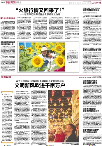 ~~~——记者探访海南民营企业节后开工热潮