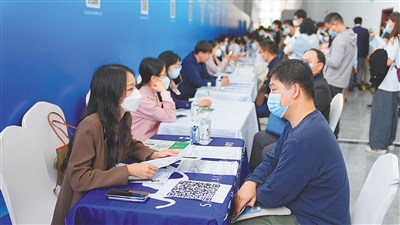 对接会根据人流情况采取分批进入的措施,为用人单位与求职者提供良好洽谈环境,现场人气火爆。活动中,求职者与招聘人员互动频繁,气氛热烈。求职者细致阅读企业概况、详细询问用工需求,寻找适合自己的工作岗位。河南籍学子侯韦辰是海南大学林业专业应届硕士毕业生,他当天早早就来到会场,经过认真了解后与白沙农场集团现场签约,“海南正在建设自由贸易港,未来将有更多机遇,这让我坚定了留在海南工作的信心。”
