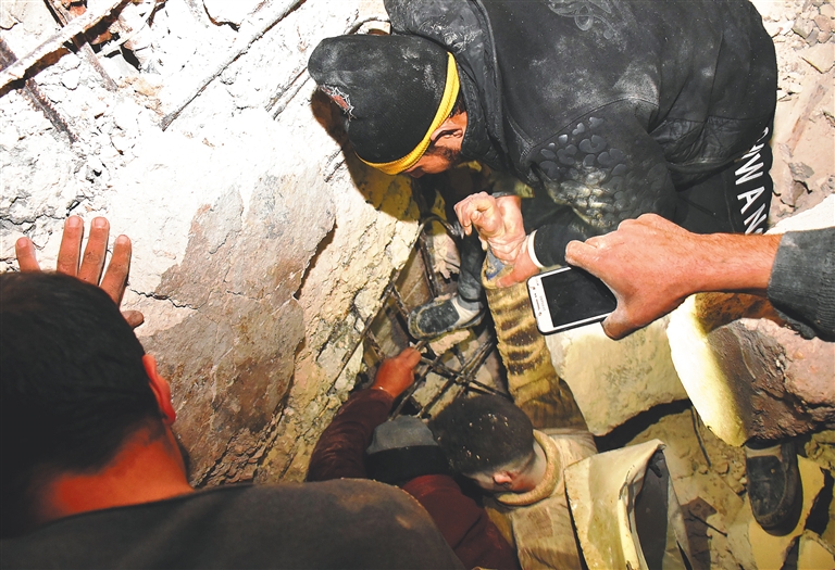 土耳其灾害与应急管理署发布的一段视频显示,在马拉蒂亚市,一名救援人员爬进废墟中试图与受困者交流。这名救援人员说:“你穿的衣服是什么颜色,是粉色吗?这会儿请再忍耐一下,我现在什么也看不到。”