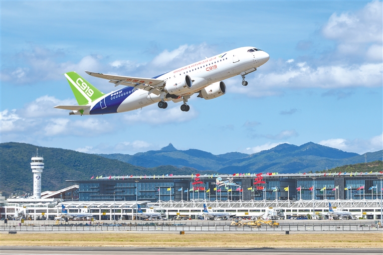 2月8日,执行“上海浦东—三亚—哈尔滨”航线长航程运行能力验证试飞任务的C919飞机在三亚凤凰国际机场短暂停留。据悉,凤凰机场是C919飞机典型航线和长航程运行能力验证试飞飞行机场之一,此次航线演示将模拟整个航班的运行过程,为C919飞机后续投入商业运行奠定坚实基础。图为C919飞机从凤凰机场起飞,前往哈尔滨。文/本报记者 李艳玫 图/本报记者 王程龙