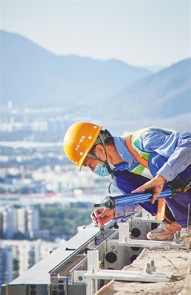 二月八日三,亚中交国际自贸中心总部项目现场工,人抓紧施工。本报记者 封烁 摄