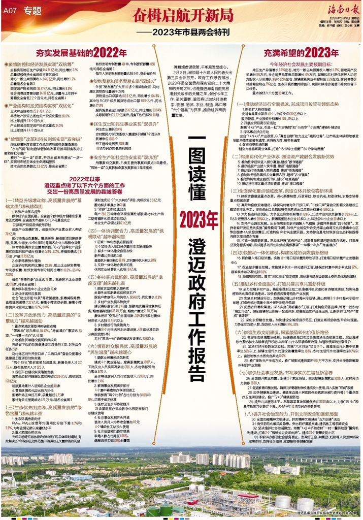 2月8日,澄迈县十六届人民代表大会第三次会议召开。政府工作报告指出,2023年是全面贯彻落实党的二十大精神的开局之年,也是推进海南自由贸易港封关运作的关键之年,做好今年工作,至关重要,澄迈将以加快打造数字、油服、物流、农业、制造、港口等“六个强县”为抓手,推动经济高质量发展。
