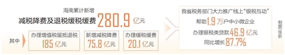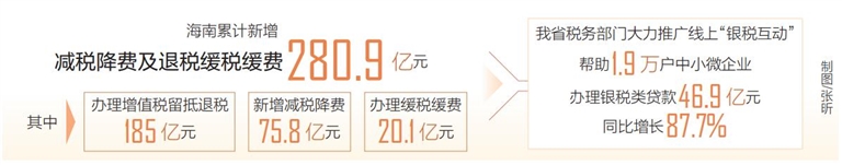 本报讯(记者王培琳 通讯员曲易伸)去年,海南累计新增减税降费及退税缓税缓费280.9亿元,其中,办理增值税留抵退税185亿元,新增减税降费75.8亿元,办理缓税缓费20.1亿元。这是海南日报记者从日前召开的省税务工作会议上了解到的。