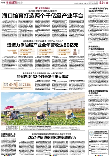 2023年,澄迈还将积极融入海口经济圈,通过落实8个一体化发展任务,实施13个海口经济圈先导性项目,积极谋划并加快推动海口—澄迈快速路等项目建设全力配合环岛旅游公路建设。
