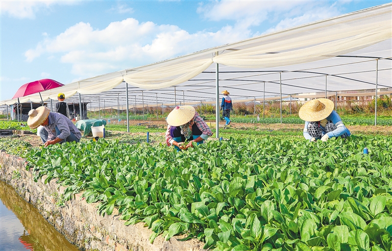 为全面推进乡村振兴,海口秀英区加大撂荒耕地复耕复种力度,打造龙头洋无公害蔬菜基地,建起简易蔬菜大棚、网棚,实施连片种植,突出蔬菜产业的生态化、市场化、产业化,让土地释放更多效益,助力村民增收。本报记者 李天平 摄