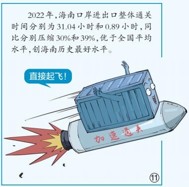 进出口贸易要拼物流速度。货物多在关口停留一天,企业就要多付出一天成本,经营者就会多几分焦虑。如何让通关速度快起来,把企业通关成本降下来,显然是优化营商环境的一道必答题。统计数据显示,2022年海南进出口整体通关时间同比分别压缩30%和39%,优于全国平均水平,创海南历史最好水平。通关速度加快了,经营成本减少了,企业也就多了赢得市场先机的底气。