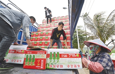 桥头地瓜、苹果枣……日前,澄迈县大丰镇电商综合服务站里,各类农特产品令人目不暇接,站长李荣花正忙着进行分拣、打包和装车。