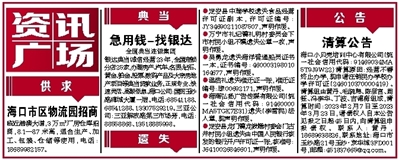 ●温浩礼遗失准迁证一张,准迁证编号:琼00692171,声明作废。