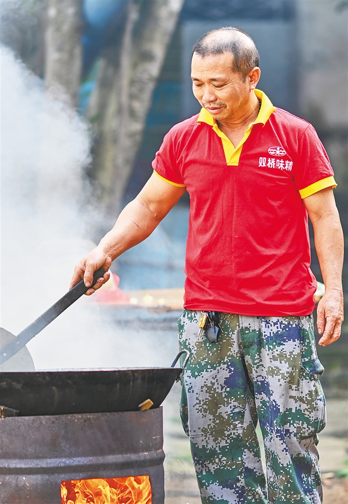 “很多厨师用不惯别人的锅,过去交通不方便,我父亲都是背着锅骑自行车,或者坐手扶拖拉机去别人家炒菜。经常在一家炒完就要去下一家,几天不回家是常有的事。”李丰说,如今交通方便了,但也只是节省了路上的时间,开席前的准备环节一个都不能少,“提前买好食材、调味料,查看厨具等是否准备妥当,场地布置合不合理,尽量不让意外发生。”