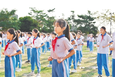 本报屯城2月13日电(记者谢凯 通讯员林小丹)2月13日是开学第一天,屯昌县新兴中心小学的操场上,325名学生在武术指导老师指导下,练习大马五行桩拳,开启了他们新学期的第一课。