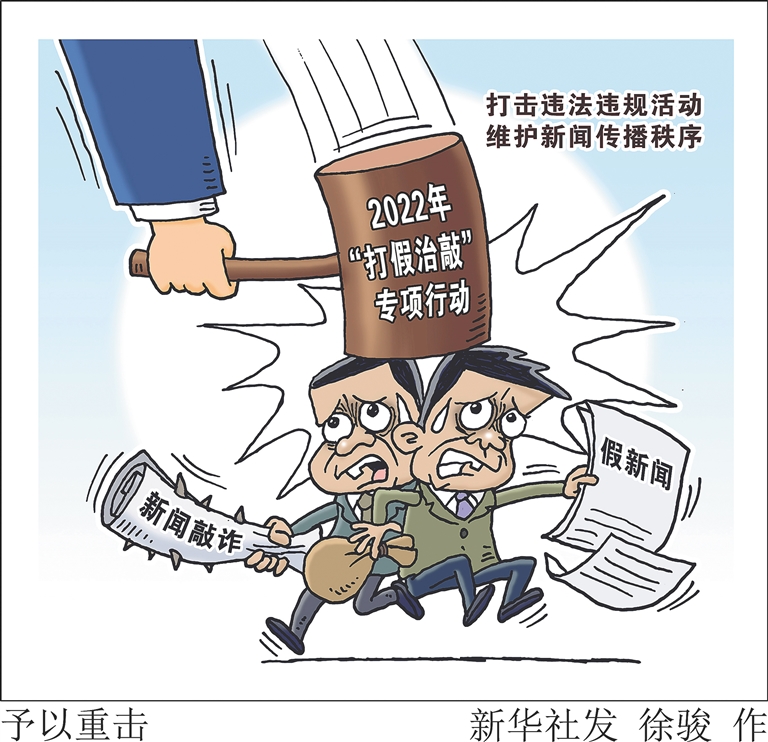 为深入贯彻落实习近平新时代中国特色社会主义思想,为迎接宣传贯彻党的二十大营造良好舆论环境,2022年中宣部联合中央网信办、最高人民法院、最高人民检察院、外交部、工业和信息化部、公安部、国家税务总局、国家市场监督管理总局、国家广播电视总局、国务院港澳办、证监会、中华全国新闻工作者协会12个部门,精心组织、统筹调度,指导推动各地区各相关部门单位不断把打击新闻敲诈和假新闻专项行动(简称“打假治敲”专项行动)向纵深推进,取得了新进展新成效。