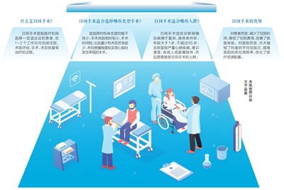 据介绍,当天办理入院后进行手术,当天下午或晚上出院,是日间手术的理想状况。但由于不同手术的要求不同,不同患者的身体状况不同,有些患者需留院观察一晚,第二天出院,时间在48小时内,也属于日间手术。