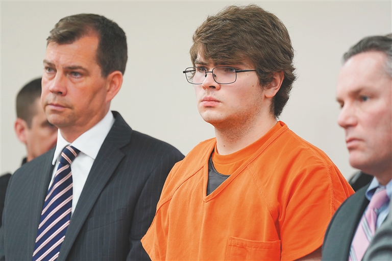 2月15日,美国布法罗枪击案凶手佩顿·金德伦在纽约州伊利县一家地方法院出席庭审。