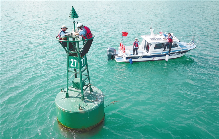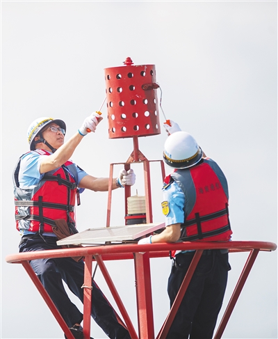 据悉,共有近50名来自海南省港航管理局的航标工,在澄迈、儋州、三亚等8个航道所,日夜维护着全省近200个水上浮标和灯塔,保障航道的畅通安全。