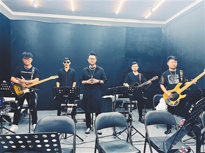 还没走进排练室,在门口便听到了屋里传来的音乐。吉他、贝斯、架子鼓、合成器、音响……设备齐全,20平方米的屋子里,5个年轻人正在排练他们的原创歌曲《爱到底》,为几天后的演出做准备。