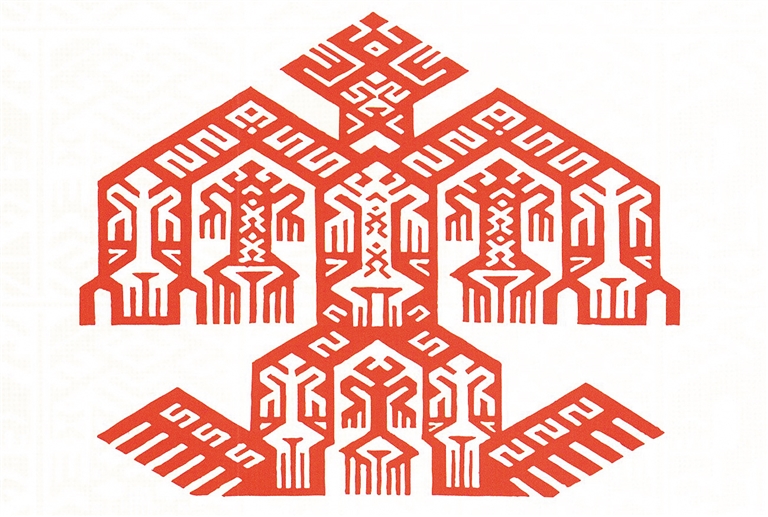 从海南馆藏的黎锦来看,有不少黎族妇女的筒裙上织着蛙纹图案。另外,过去黎族妇女有文身的习俗,文身的式样中也有蛙纹。黎锦和文身的蛙纹与黎族妇女所戴的麒麟挂件可能有相同的功用,麒麟挂件有“麒麟求子”的寓意。