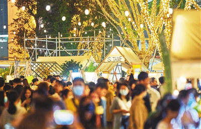 今年以来,海口市着力打造“市集经济”,进一步丰富了夜间消费业态,加速了消费市场复苏。图为海口世纪海角商业街日前举办的春日市集。本报记者 封烁 摄