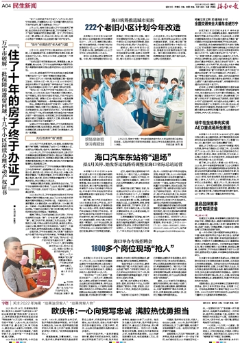 本报海口2月23日讯(记者郭萃)记者从海口市交通运输和港航管理局获悉,为进一步优化客运站场资源配置、统筹客运班线发班运营管理,结合当前海口市道路客运市场现状,海口海汽运输有限公司申请拟于今年4月关停海口汽车东站,并将海口汽车东站始发的客运线路调整至海口省际总站(汽车西站)发班运营。