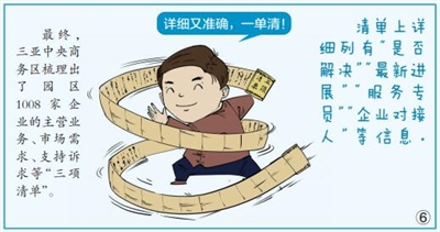 为更精准服务园区企业,今年以来,三亚中央商务区组织“商代表”,对园区企业进行信息收集普查,共登记1008家企业的主营业务、市场需求、支持诉求,通过清单式管理、跟踪式服务,做到开展一轮走访、解决一批问题、谋划一批产业项目。