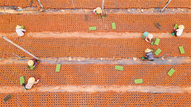 2月26日博鳌镇的花农在培育花卉。春暖花开时节,琼海博鳌一处大型花卉基地的花农正在加紧培育花苗,用于绿化美化城乡。特约记者 蒙钟德 摄