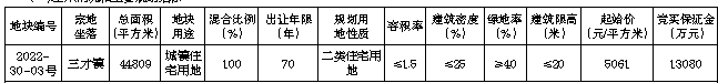 三、开发建设要求:(一)该宗地净地审核文件按海南省自然资源和规划厅《关于进一步规范建设用地使用权招标拍卖挂牌出让管理的通知》(琼自然资整〔2022〕244号)规定由县人民政府出具。(二)用地出让控制标准和用地准入协议按照原海南省国土资源厅、海南省发展和改革委员会等《关于印发海南省建设用地出让控制指标(试行)的通知》(琼国土资规〔2018〕7号)和《关于实施产业项目发展和用地准入协议的指导意见》(琼国土资规〔2018〕8号)有关规定执行,该宗地属房地产业,投资强度指标设定为不低于450万元/亩,项目的投资总额不低于30247万元人民币,不设年度产值和税收指标。以上出让控制指标按规定列入《产业项目发展和用地准入协议》,属该协议内容的组成部分。(三)竞得人取得该宗国有建设用地土地使用权后,必须按规定办理建设立项备案、建设项目环境影响评价手续后,方可动工建设。该宗用地应当实施装配式建筑,装配率不低于50%。竞得人取得建设用地使用权后3个月内动工开发建设,自动工之日起一年内完成投资额度不低于项目总投资额的50%,两年之内完成项目总投资额的100%。竞得人在项目建成前,不得以转让、出租等任何形式转让土地使用权。
