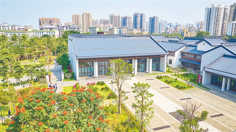 “您眼前看到的白墙青瓦琼北民居风格的建筑,就是此次新建成的海瑞展览馆。”在徐晶的带领下,记者与前去参观的市民游客一同穿过公园南门广场,走进海瑞展览馆。