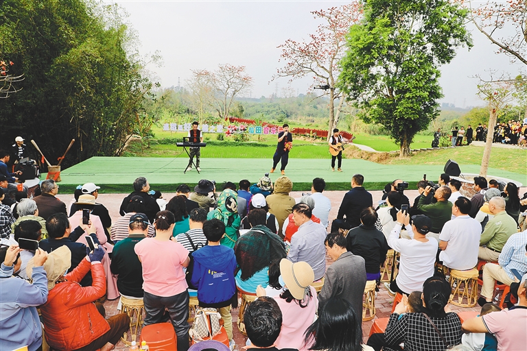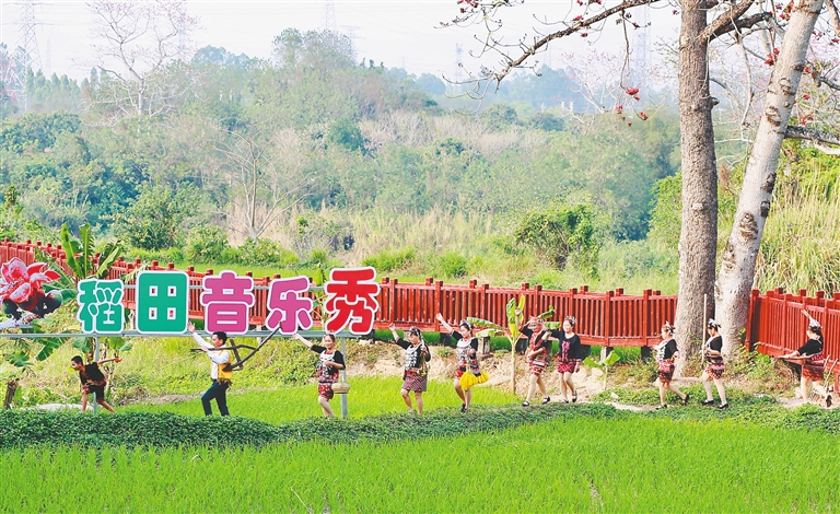 “这种表演形式非常接地气,尤其是演员从稻田里走出来,加上自然的环境,让我感觉非常真实。”来自东方市的摄影爱好者王隆权说,每年木棉花开时节他都会来昌江,今年的稻田音乐秀在形式上进行了创新,是往年没有的。