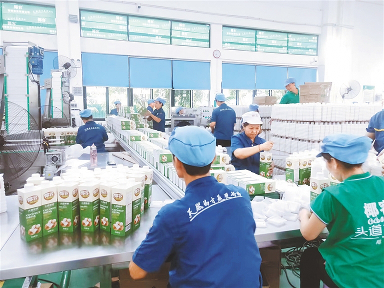 椰容实业是较早在洋浦保税港区设厂生产的企业之一,也是洋浦重点食品企业。夏先华说,2017年在洋浦设厂时,主要看准洋浦保税港区的政策优势和港口优势,产品可通过海运快速进入国内市场。随着海南自贸港建设的不断推进,作为先行先试的洋浦发展潜力巨大,也给企业创造了更大的发展空间。