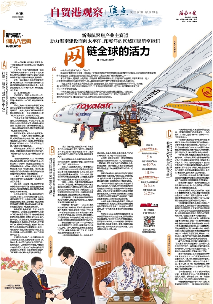 作为本土航空企业,海航航空集团充分发挥航空产业对自贸港最为重要的人流物流汇聚的强大支持促进作用,做大做强旗下航空维修、航空运输等产业,配合打造海南自贸港世界级航空产业,建设面向太平洋、印度洋的区域国际航空枢纽。