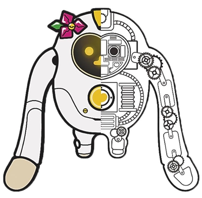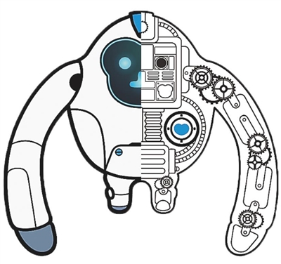 “机械猿”脸部为液晶显示屏,可显示九种不同表情,表达不同情绪和状态;身体由金属构成,心脏处安装电池,身体连接处采用复合齿轮的设计
