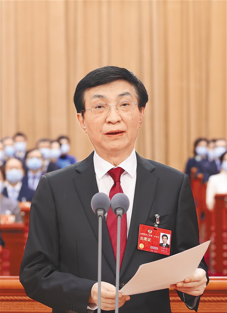 十三届全国政协主席汪洋代表政协第十三届全国委员会常务委员会向大会报告工作。汪洋强调,中共二十大擘画了以中国式现代化全面推进中华民族伟大复兴的宏伟蓝图,为党和国家事业发展进一步指明了前进方向。人民政协要全面贯彻习近平新时代中国特色社会主义思想,持续深入贯彻中央政协工作会议精神,认真履行各项职能,践行全过程人民民主,促进中华儿女大团结,为实现中共二十大确定的目标任务作出新的贡献。
