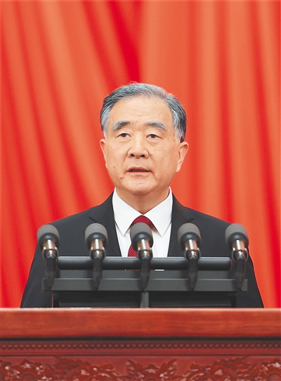下午3时,王沪宁宣布大会开幕,全体起立,高唱中华人民共和国国歌。