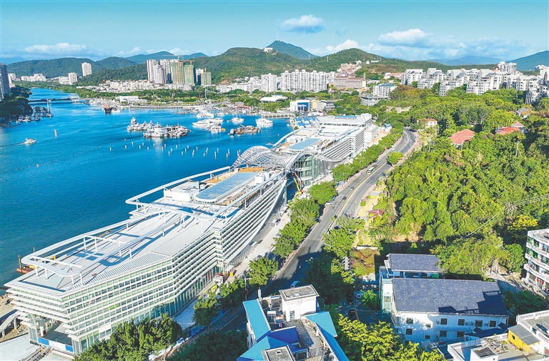 图②:2月1日,俯瞰三亚市南边海国际游艇中心项目施工现场。