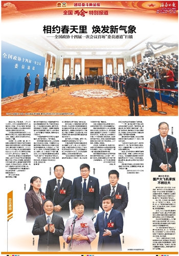 ~~~——全国政协十四届一次会议首场“委员通道”扫描