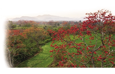 春回大地,第一朵木棉花绽放之时,春耕开始了。嫩绿的秧苗铺满梯田,与仍傲立枝头的火红木棉相映成画,人们在田头忙碌,形成一幅靓丽的春日图景。
