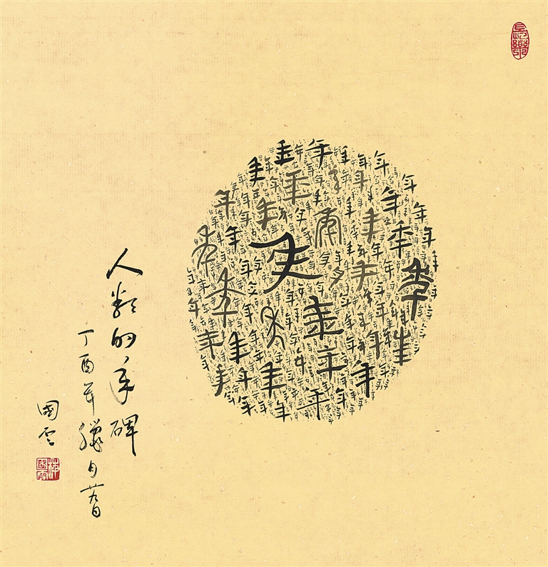 仓颉“穷天地之变”而发现的汉字,可以说是凝结了宇宙的神秘信息,所以,“文字既成,天为雨粟,鬼为夜哭,龙为潜藏”。当我神游时,脑海里总有这些方块符号闪现,这就是一幅作品,是可以被多维解读的“笔外意象”。后来“笔外意象”又被学界多次重新命名,最终称之为“字相艺术”。大家看了我的这些字相艺术作品,也许会对我的冥想恍然大悟。