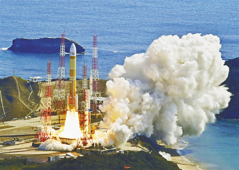 3月7日,H3火箭在日本南部鹿儿岛县发射升空(航拍照片)。