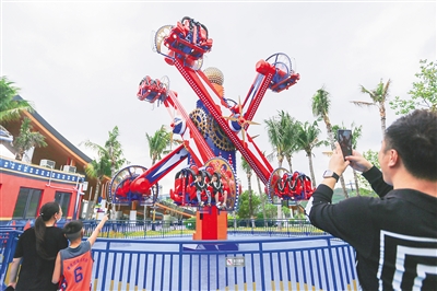 ② 在三亚丝路欢乐世界,游客体验享受“零关税”政策进口的大型游乐设备。