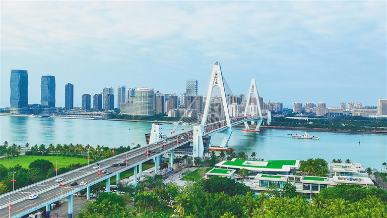 新建成的海口世纪海角商业街,成为世纪大桥一带别样风景线。本报记者 张茂 摄