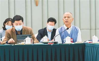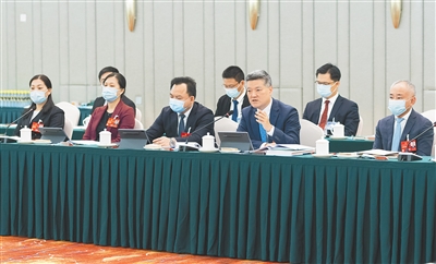 3月5日、6日,出席十四届全国人大一次会议的海南代表团在住地举行全体会议,审议政府工作报告,审查计划报告和草案、预算报告和草案。本报特派记者 宋国强 摄